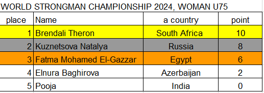 WORLD STRONGMAN CHAMPIONSHIP 2024, WOMAN U75